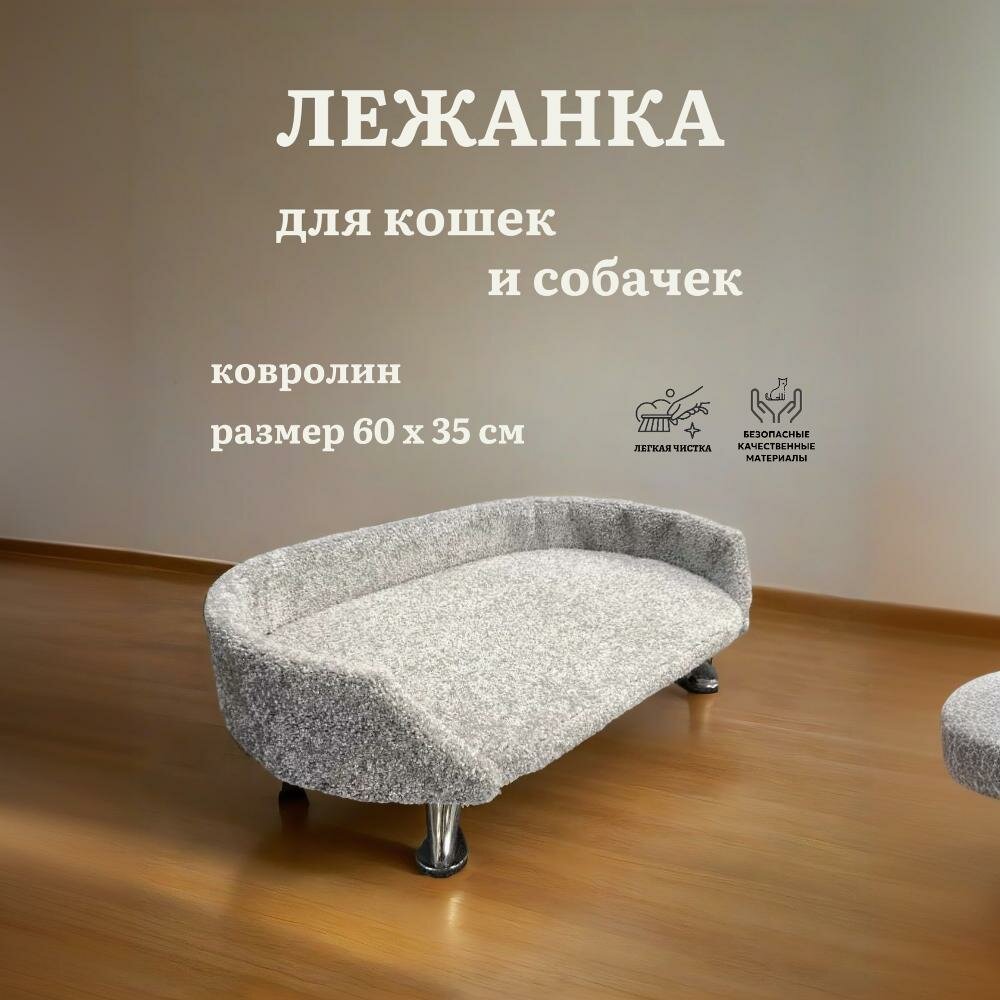 Лежанка для кошек и собак Моя Котя на ножках, ковролин светло-серый, 60х35см информация: