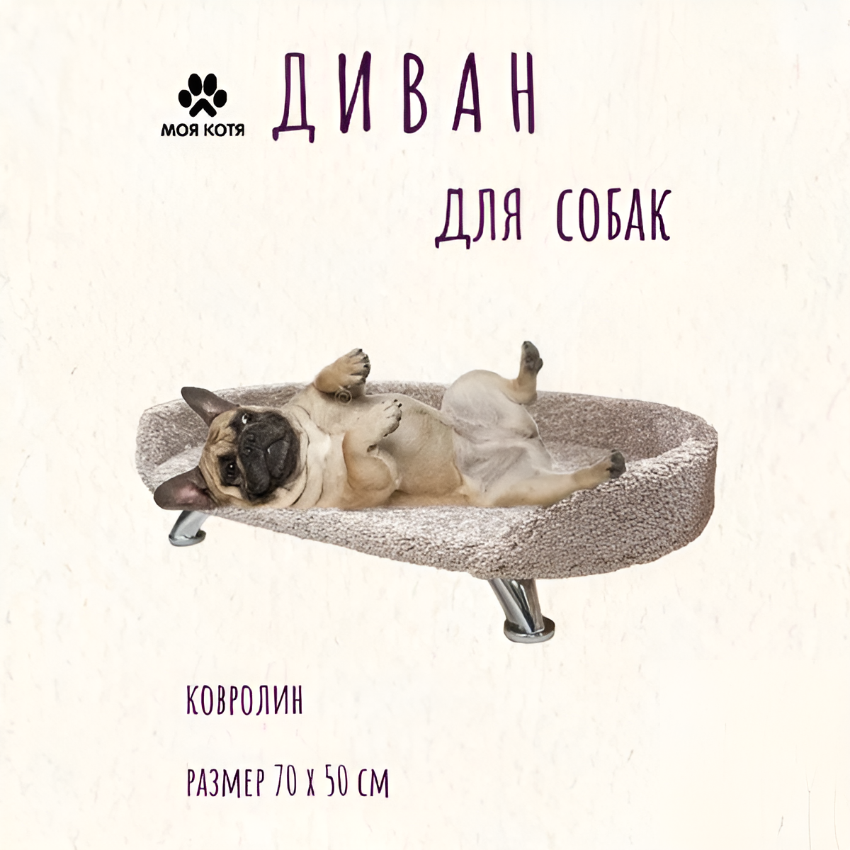 Отзывы на Лежанка для собак Моя Котя на ножках, бежевый ковролин, 70х50х10см