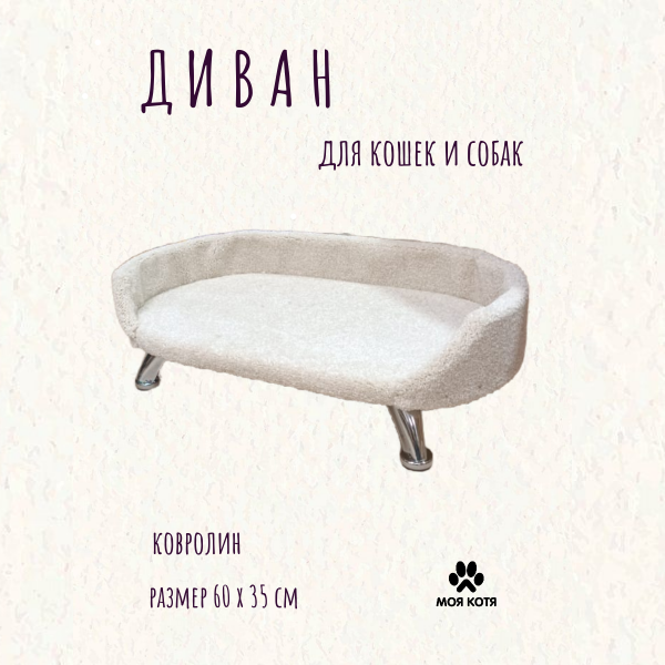 Лежанка для кошек и собак Моя Котя на ножках, белый ковролин, 60х35см информация: