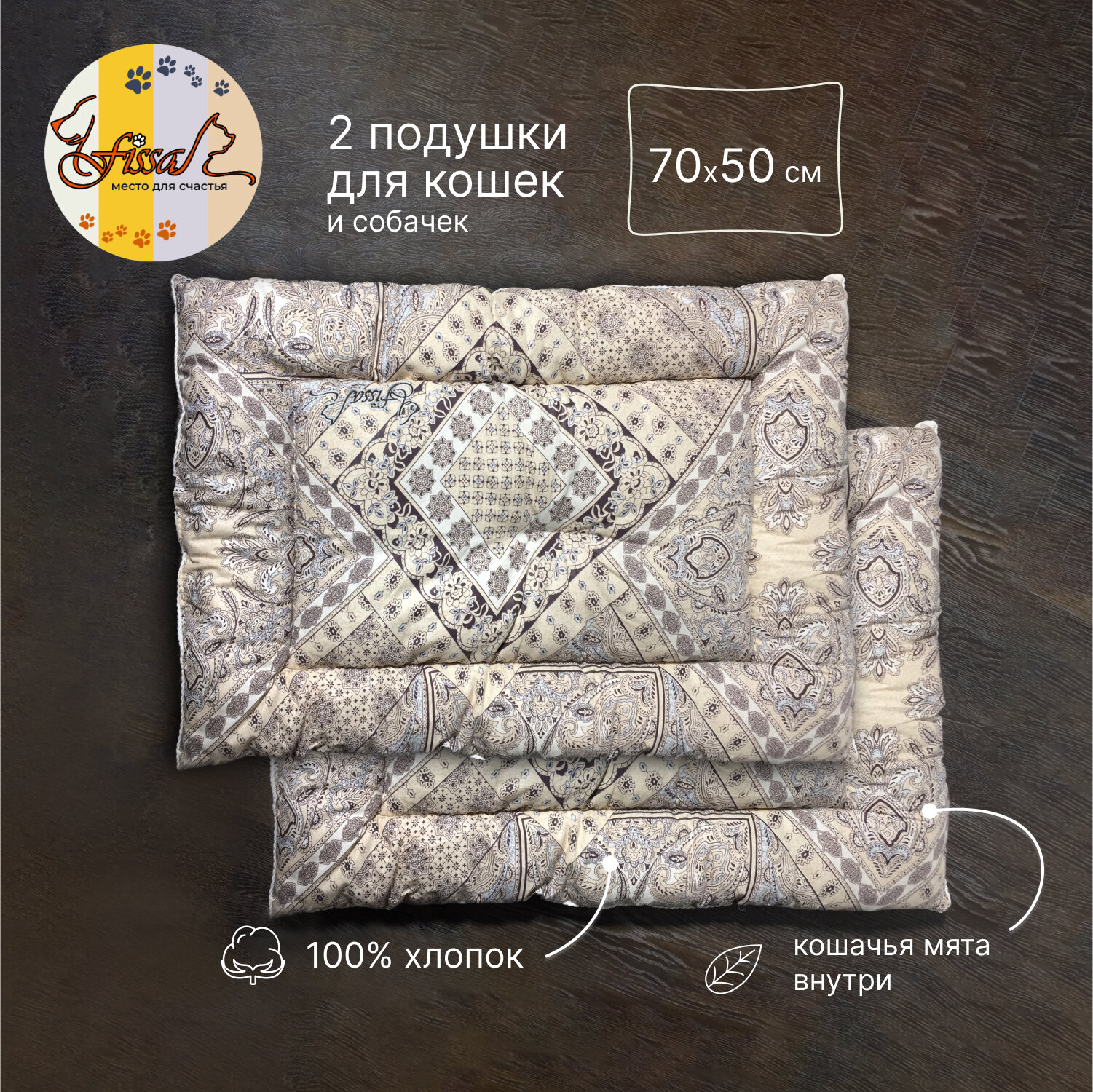 Подушки для животных FISSA коллекция "Италия", мягкая лежанка для кошек и маленьких собак, набор 2 штуки, модель СР-118, 70х50 см информация:
