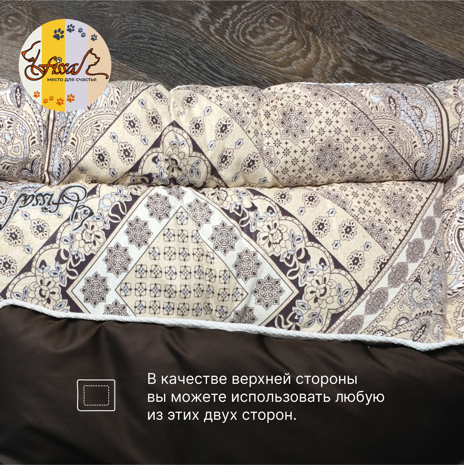 Подушка лежанка для кошек и маленьких собак FISSA, коллекция "Венеция", 70х50 см, одинаковая с обеих сторон 766 ₽