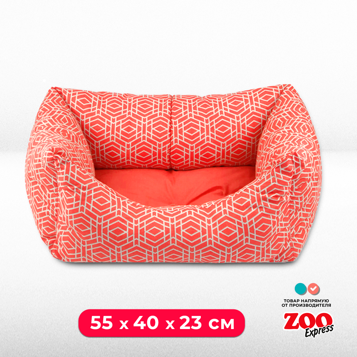 Лежанка пухлик для собак и кошек ZOOexpress Геометрия №4, 55х40х23 см, коралловый информация:
