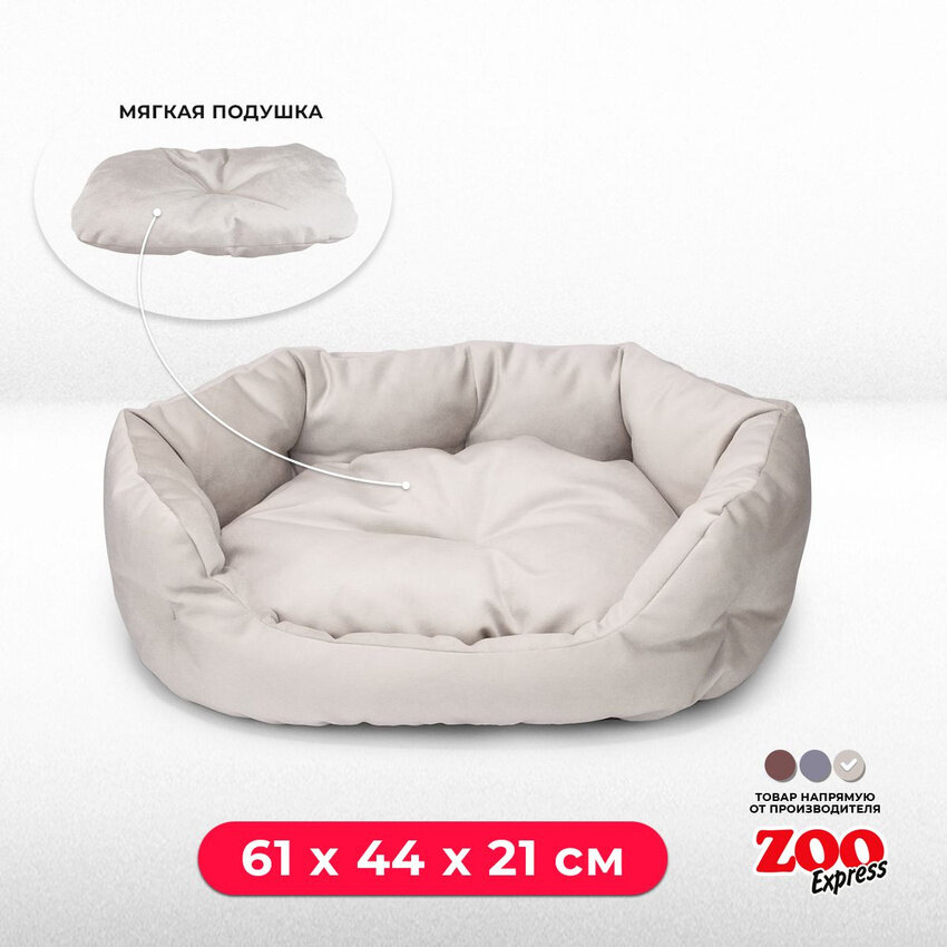10 цен на ZOOexpress Лежанка-пухлик со стяжкой для собак и кошек CITY №4, 61х44х21 см, бежевый