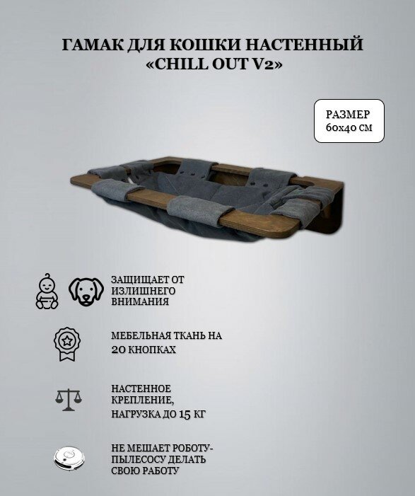Гамак для кошки Hunnkatt "Chill out V2" настенный, цвет дуб, ткань съемная, для больших пород кошек информация: