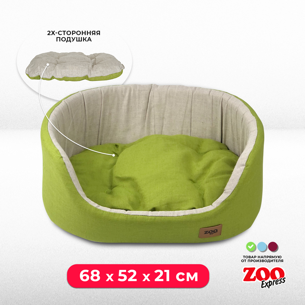 Лежанка для собак и кошек ZOOexpress Эколен №5, 68х52х21 см, зеленый информация: