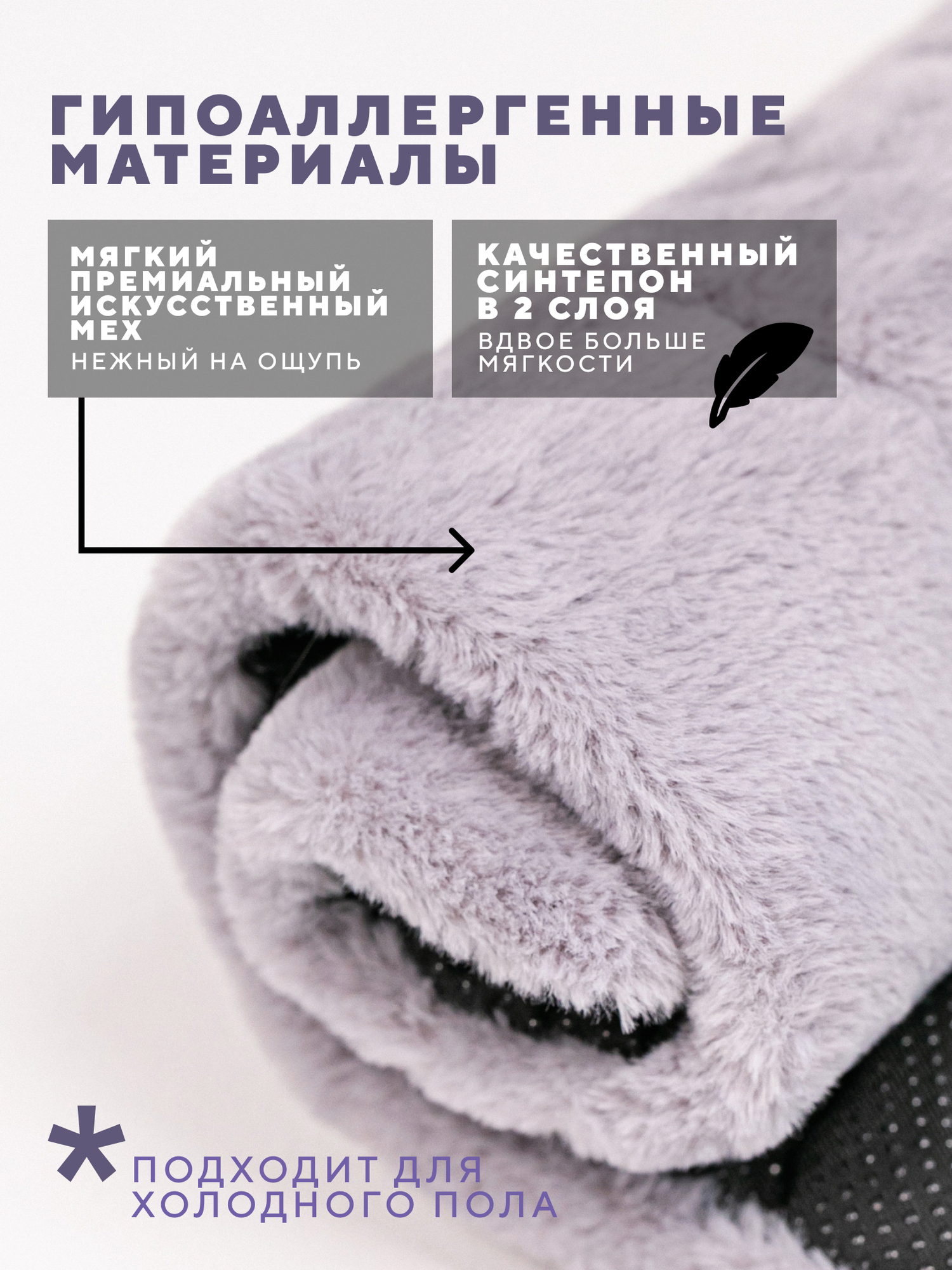 Лежанка для животных "С ХВОСТИКОМ", серая, антискользящая, мех, 65см x 40см х 4 см информация: