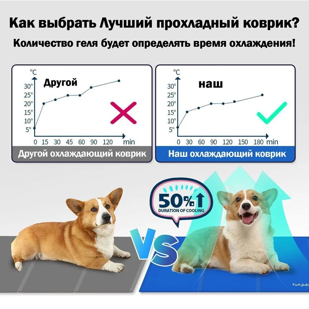 Охлаждающий коврик для собак гелевый, лежанка для кошек и собак, водонепроницаемая, холодная лежанка для малых, 40X50 см 1 277 ₽