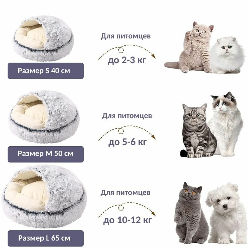 10 цен на Закрытая лежанка домик для кошек M 50 см (внутри - велюр, цвет серый) / лежанка сплюшка для сфинкса