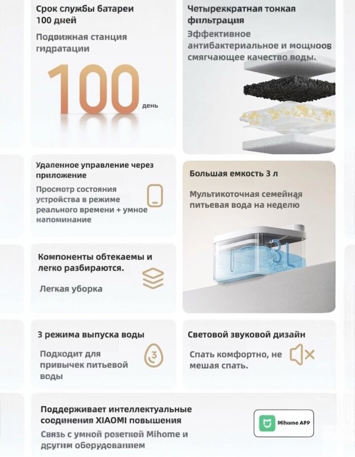 Умная поилка-фонтан Xiaomi Smart Pet Fountain MJCWYSJ02, для собак и кошек, с Wi-Fi, 3л информация: