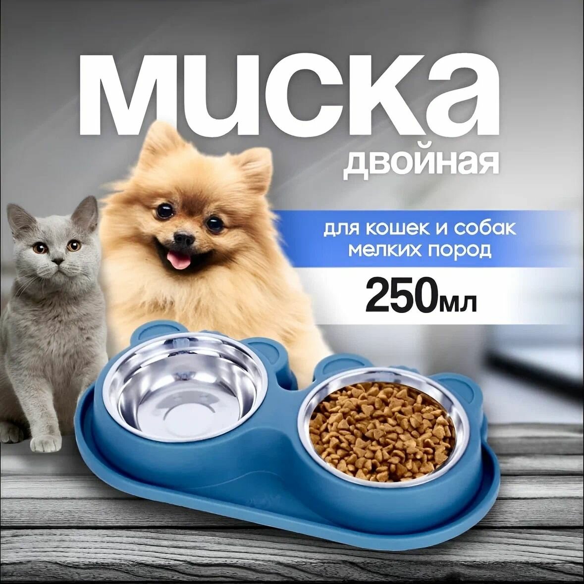 Двойная миска на подставке для кошек и собак 2 чаши по 350 мл