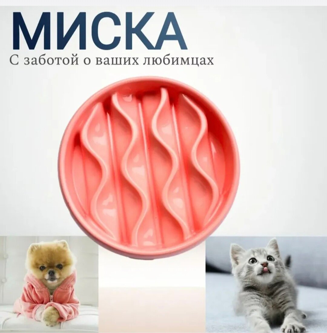 Отзывы на Миска для кормления "Медленное поедание", пластик, розовая, 300мл