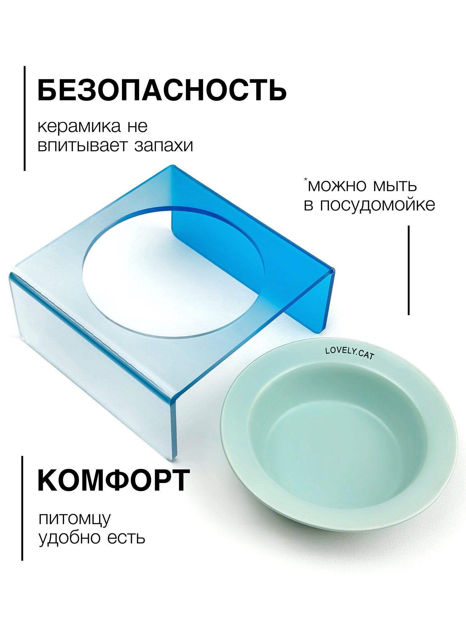 Миска для кошек и собак из керамики на подставке из оргстекла Lovely синяя информация:
