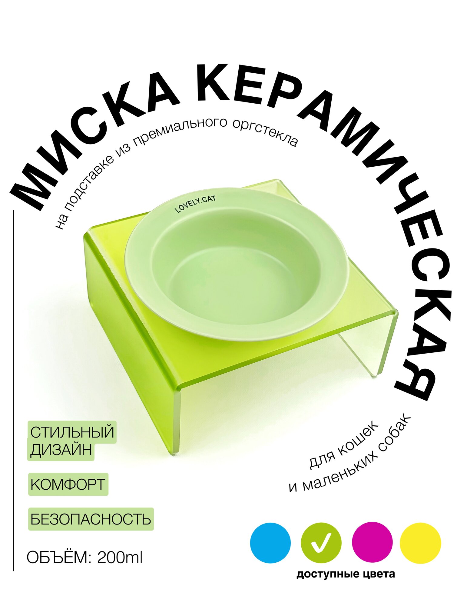 Отзывы на Миска для кошек и собак из керамики на подставке из оргстекла Lovely зеленая