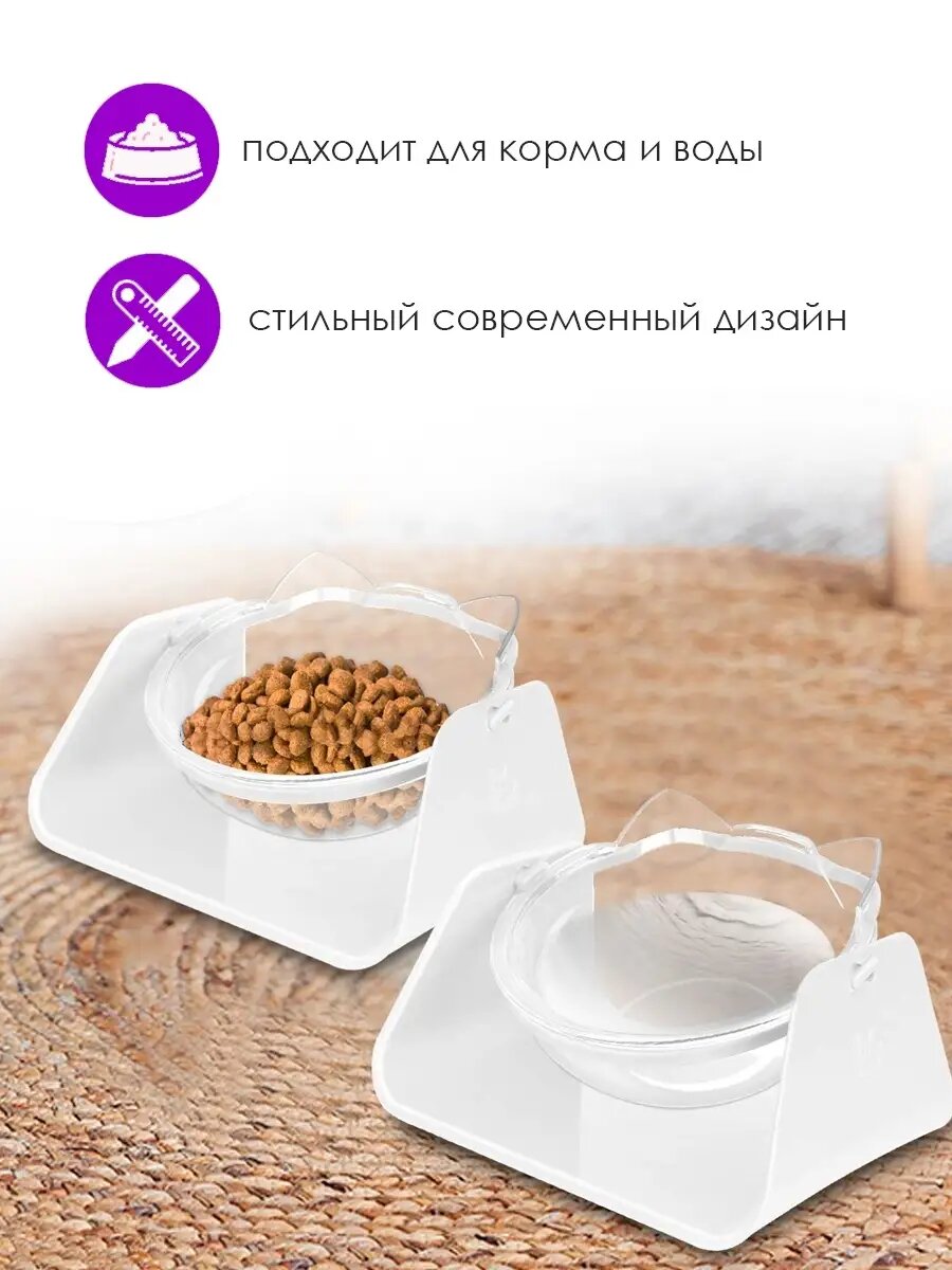 Двойная миска на подставке для кошек и собак 2 чаши по 350 мл