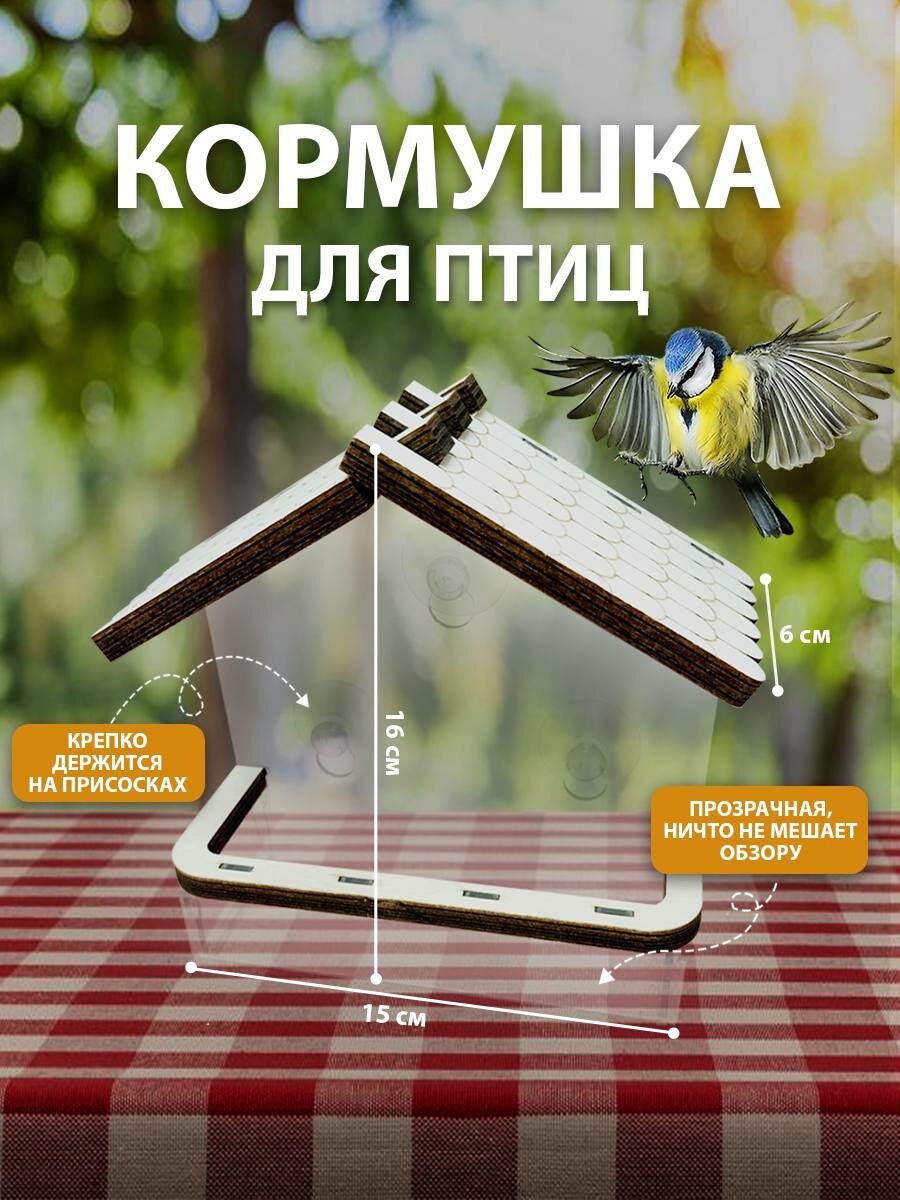 10 цен на Кормушка , для птиц, органическое стекло, пластик, на окно, 1 шт