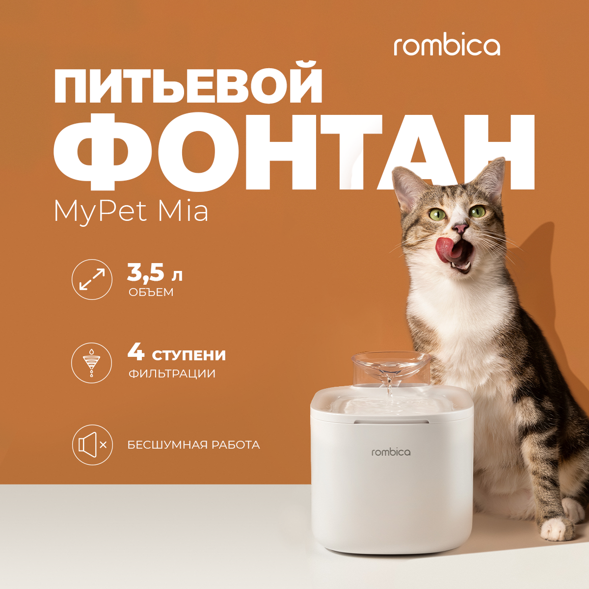 Автопоилка, питьевой фонтан для кошек 3,5 литра Rombica myPet Mia информация:
