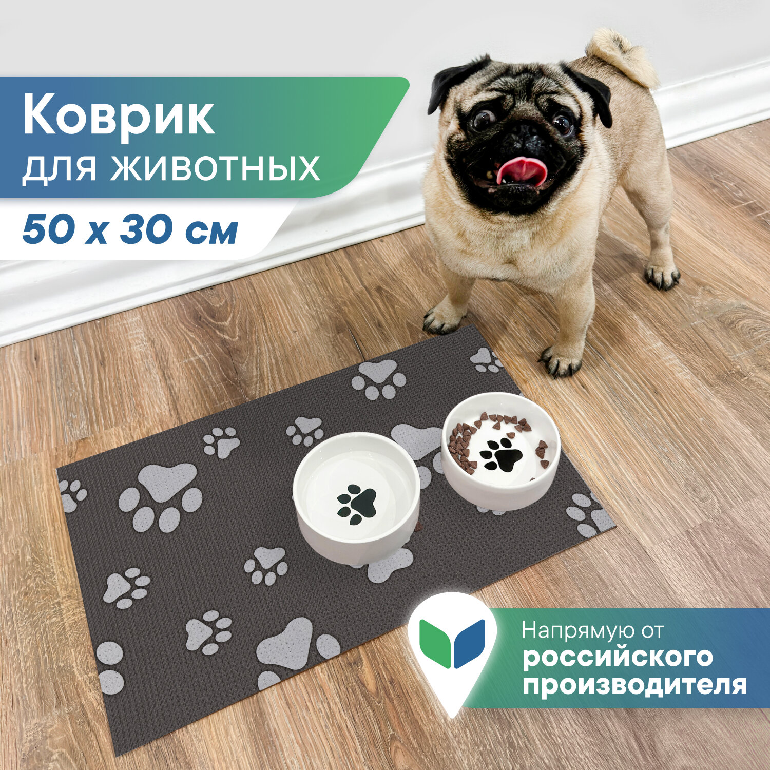 10 цен на Коврик для животных под миску противоскользящий "Зооковрик" 50х30см / коврик для кошек и собак графит
