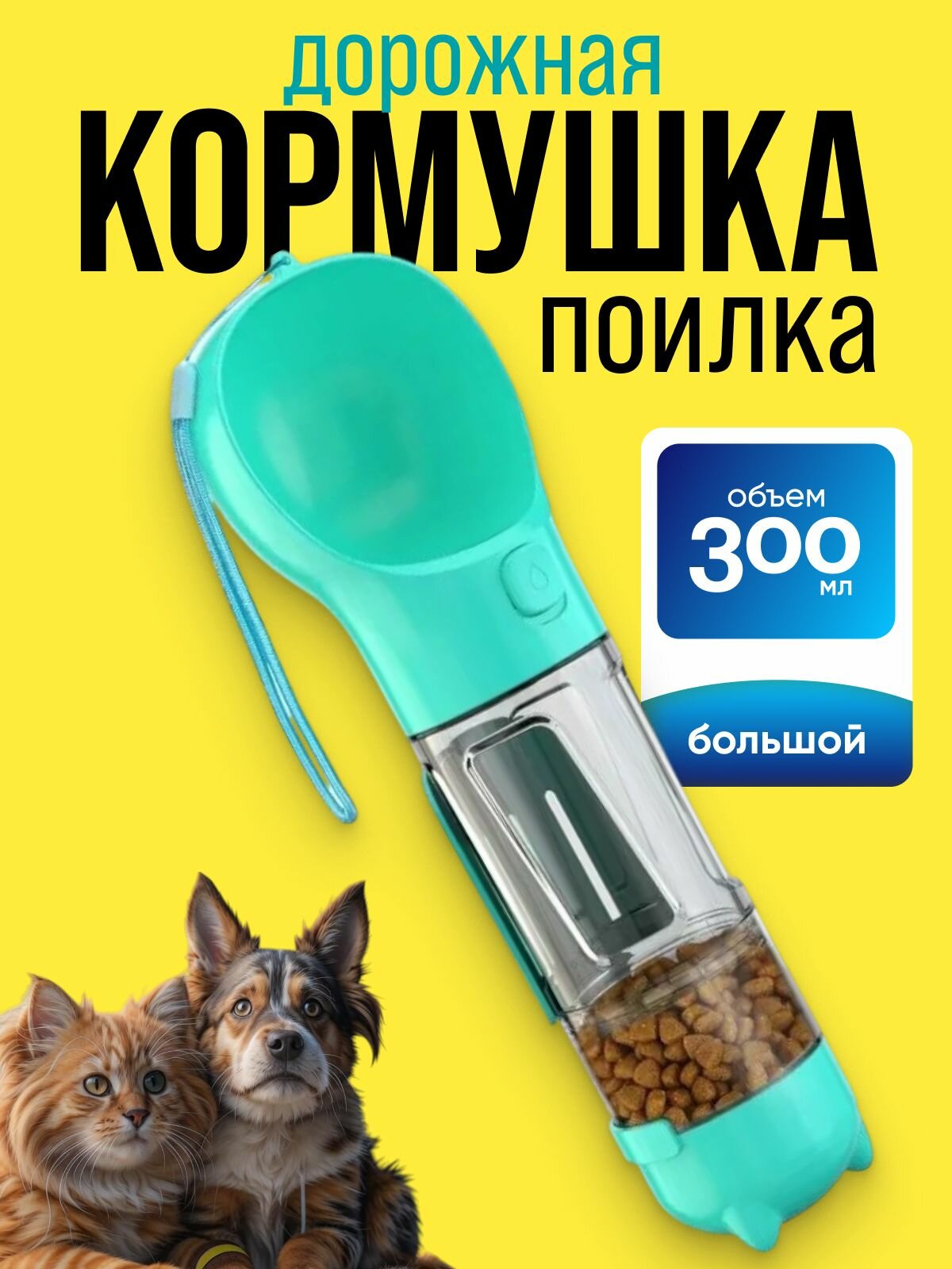 Отзывы на Многофункциональная дорожная кормушка поильник для кошек и собак голубая
