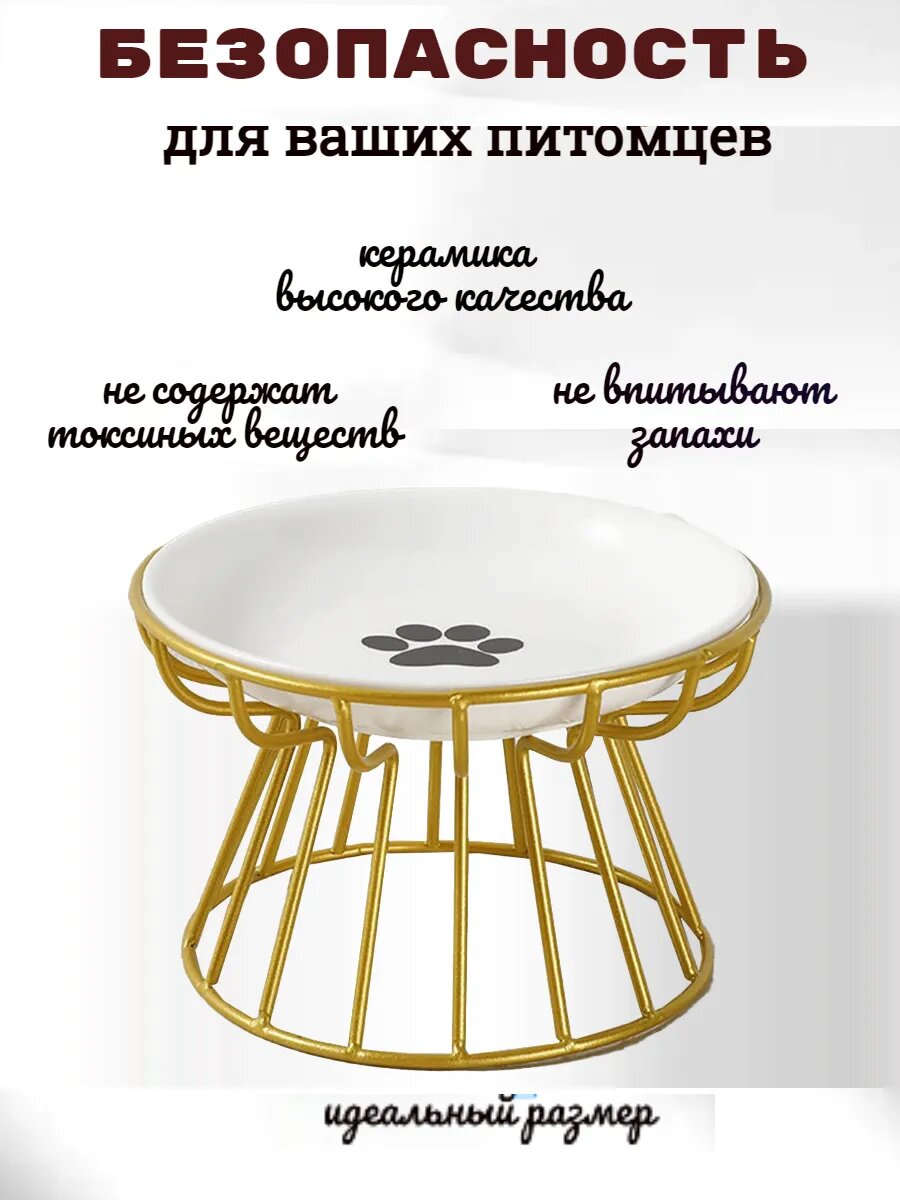 Отзывы на Миска для животных, керамика/металл, на подставке, золотая, рисунок "лапка"