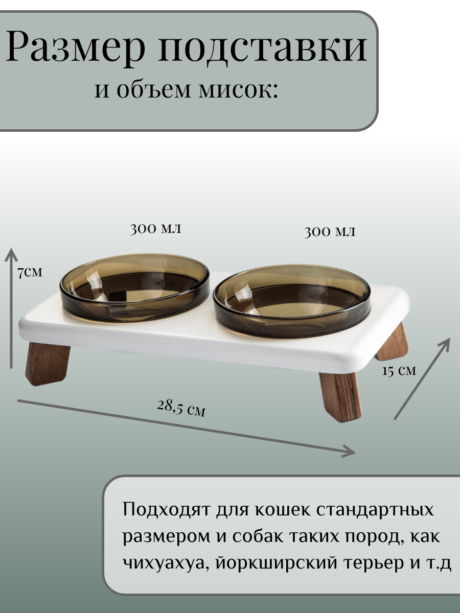 Миски на подставке для кошек и собак мелких пород, двойная, 300мл информация: