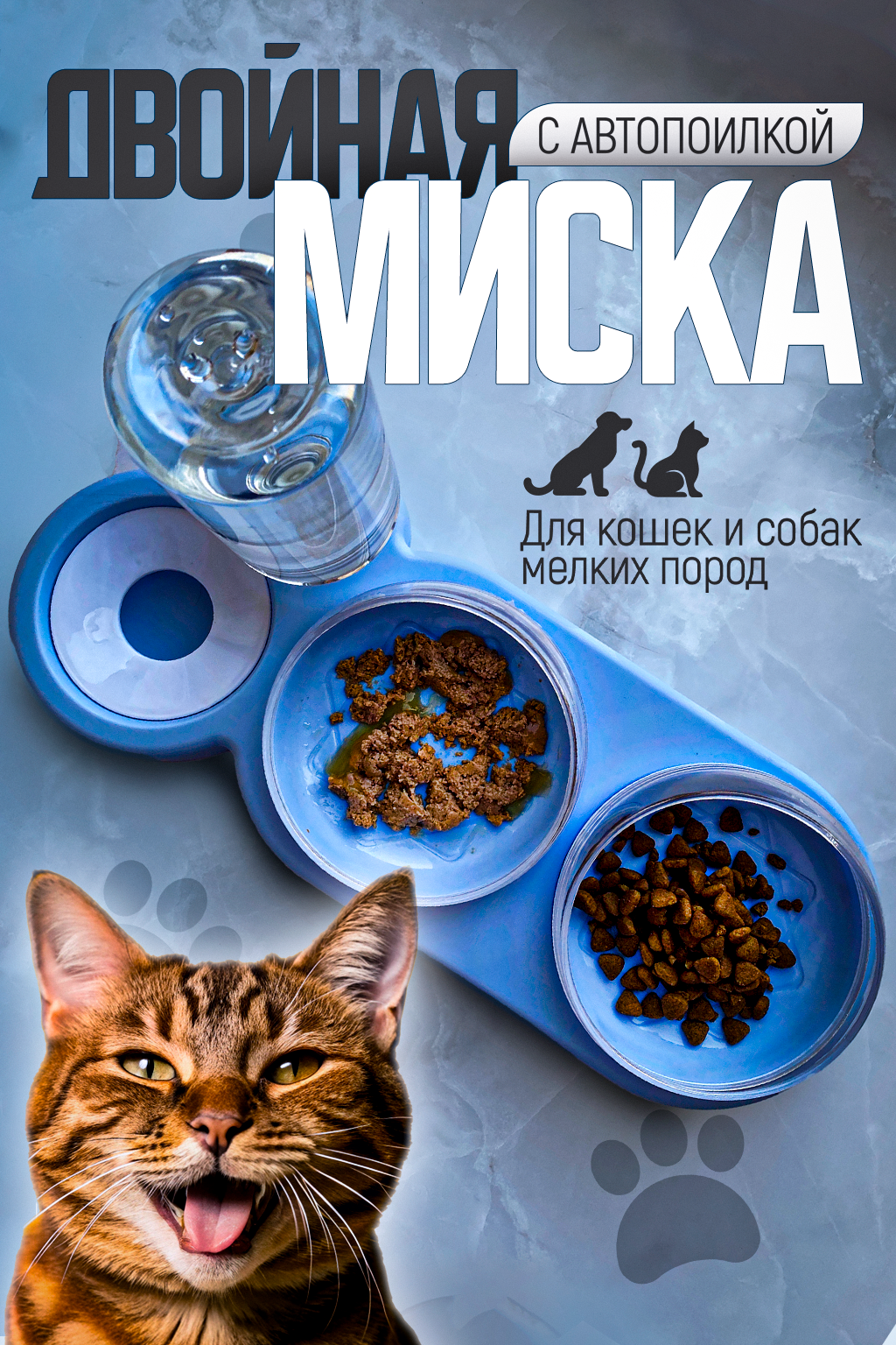 Отзывы на Миска с автопоилкой, для кошек и собак, пластик, голубая, 0.5 л