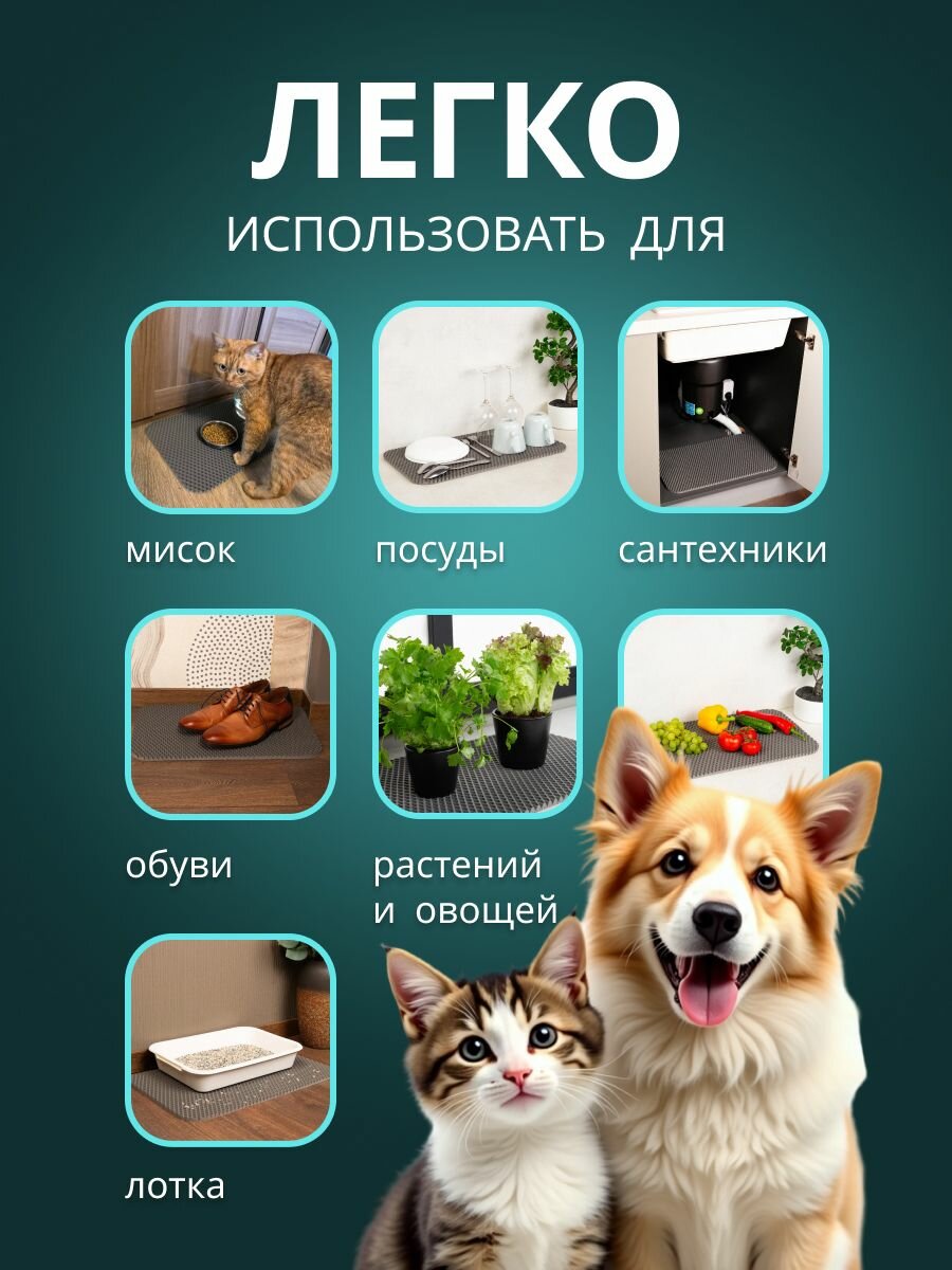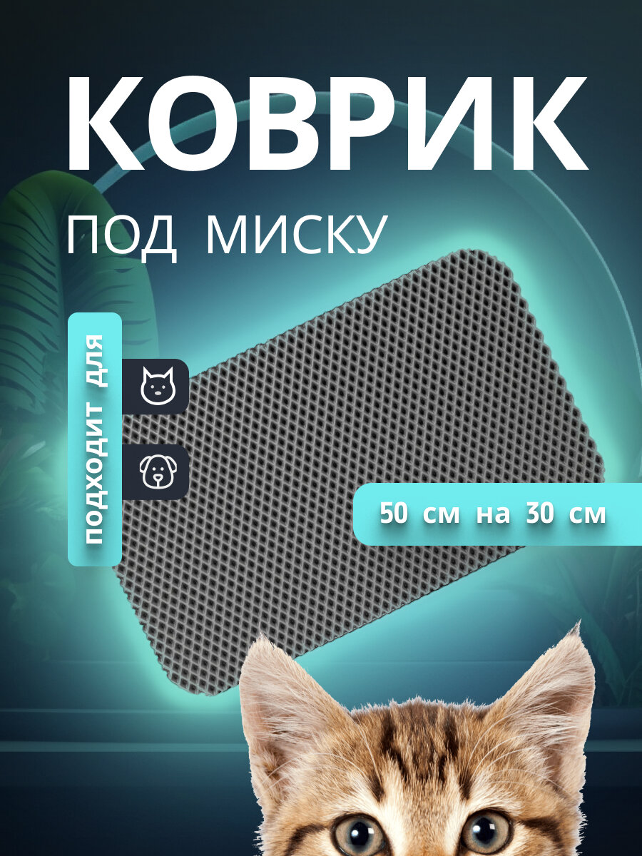 10 цен на Коврик для мисок и лотков, для кошек и собак, EVA, серый, универсальный, 50x30 см