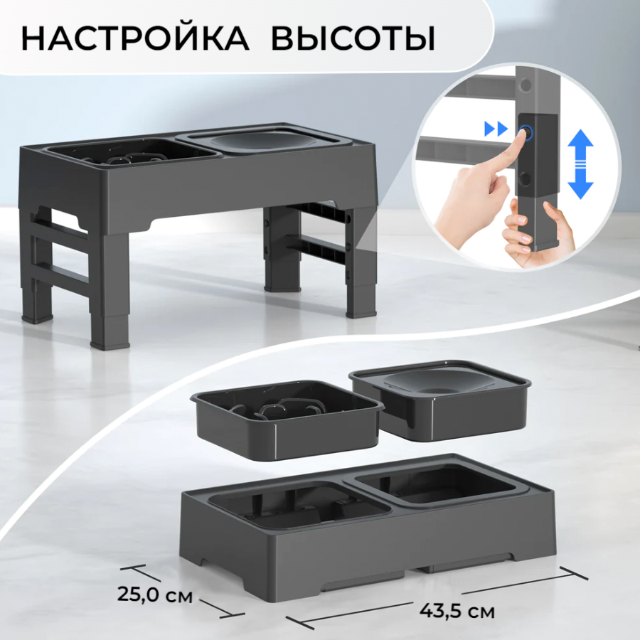Миска для медленного поедания корма для собак на подставке с регулировкой по высоте двойная 2-в-1, 4 положения информация: