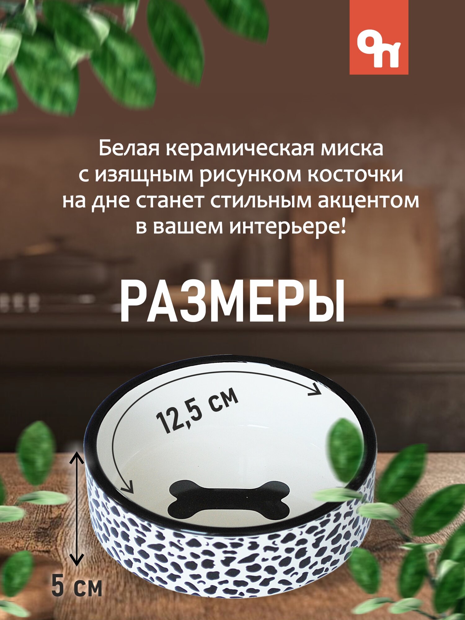 Отзывы на Миска керамическая белая с рисунком косточки для собак и кошек , 12,5х5 см, 440 мл, N1