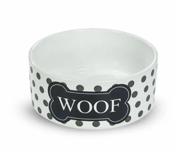 10 цен на Миска керамическая бело-черная "Woof" для собак, 12,5х5 см, 440 мл, N1