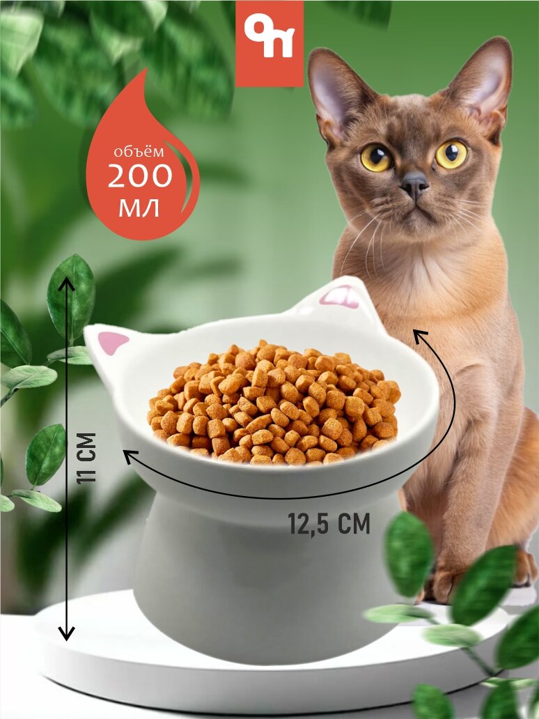 10 цен на Миска для кошки керамическая "мордочка кошки" на высокой ножке, белая, 12,5*12,5*11см, 200мл