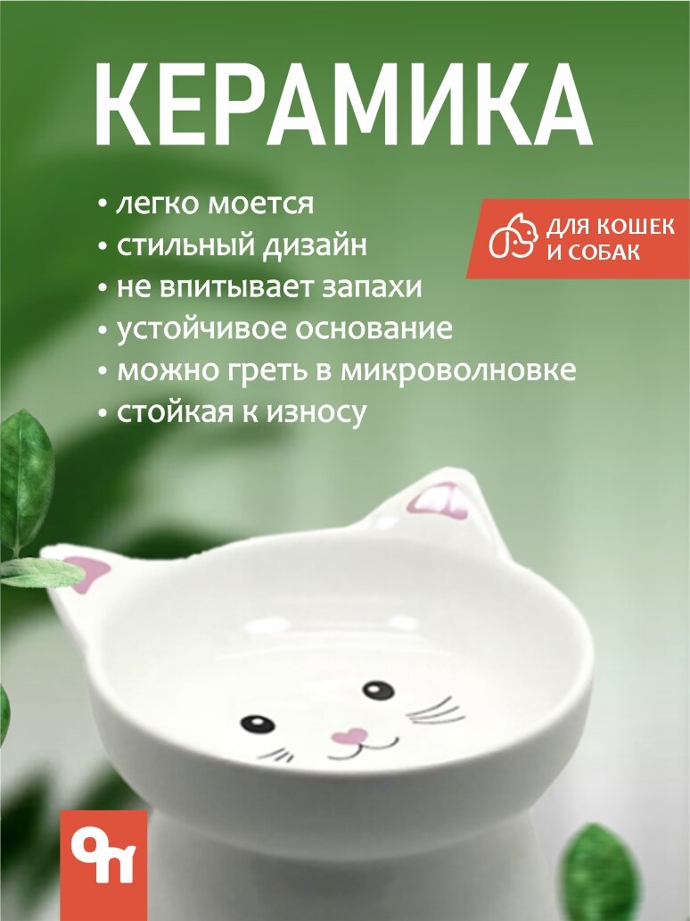 Отзывы на Миска для кошки керамическая "мордочка кошки" на высокой ножке, белая, 12,5*12,5*11см, 200мл