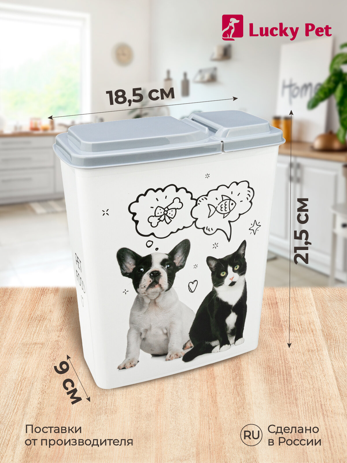 10 цен на Контейнер для корма Lucky pet, 2.3л, дорожный, серый, для кошек и собак