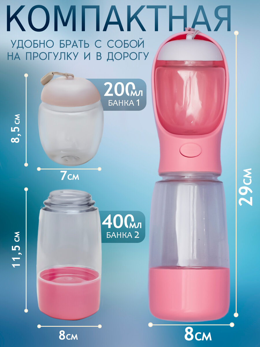 Поилка и кормушка прогулочная для собак, кошек N 3-3 розовая, дорожная бутылка непроливайка уличная, портативная 3 в 1 информация: