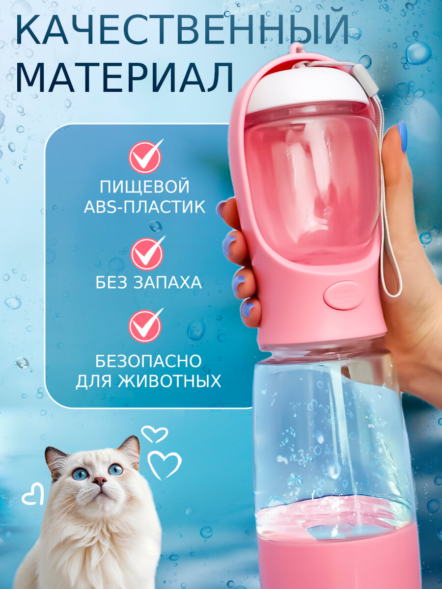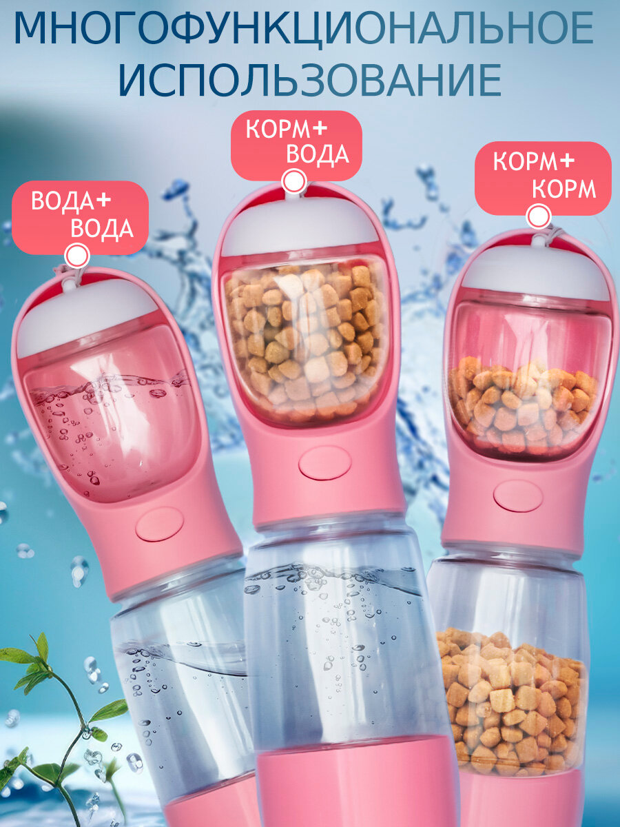 Отзывы на Поилка и кормушка прогулочная для собак, кошек N 3-3 розовая, дорожная бутылка непроливайка уличная, портативная 3 в 1