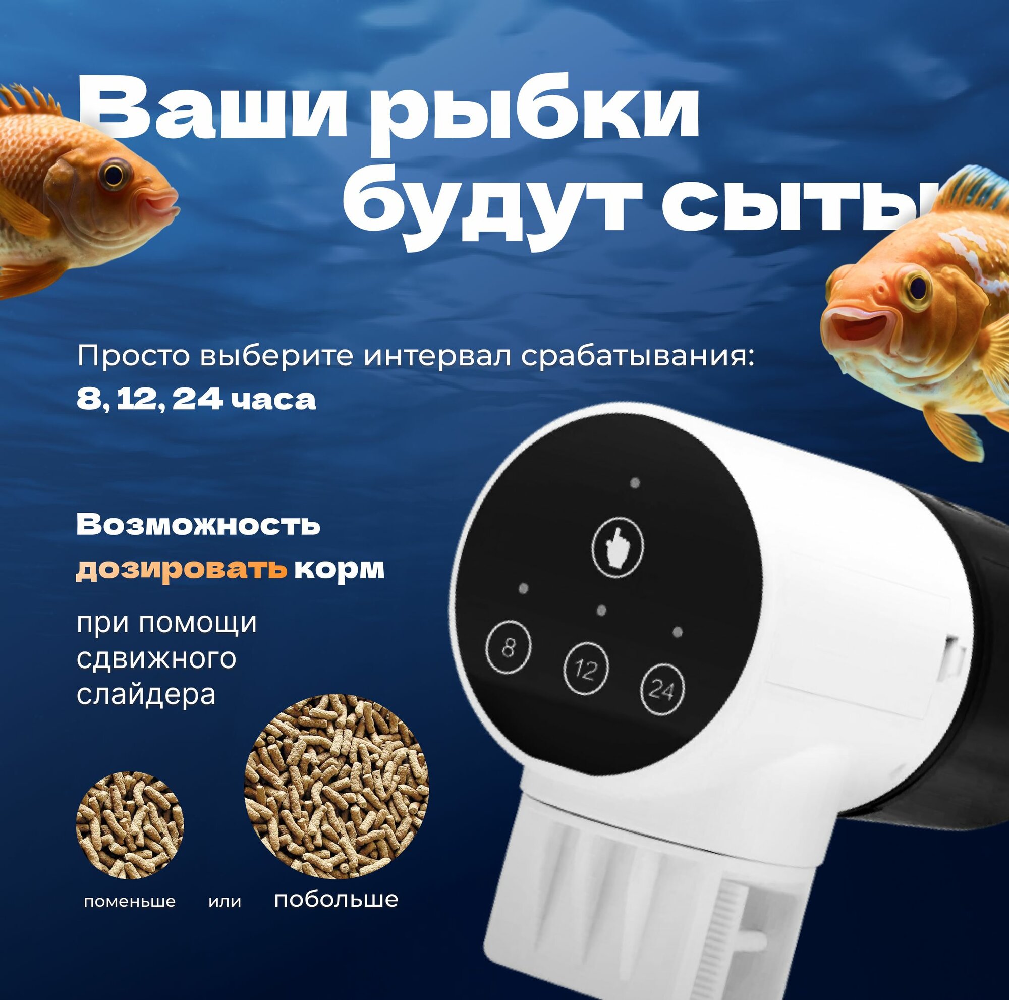 Автоматическая умная кормушка для рыб и рептилий, Автокормушка с таймером 8-12-24 час информация: