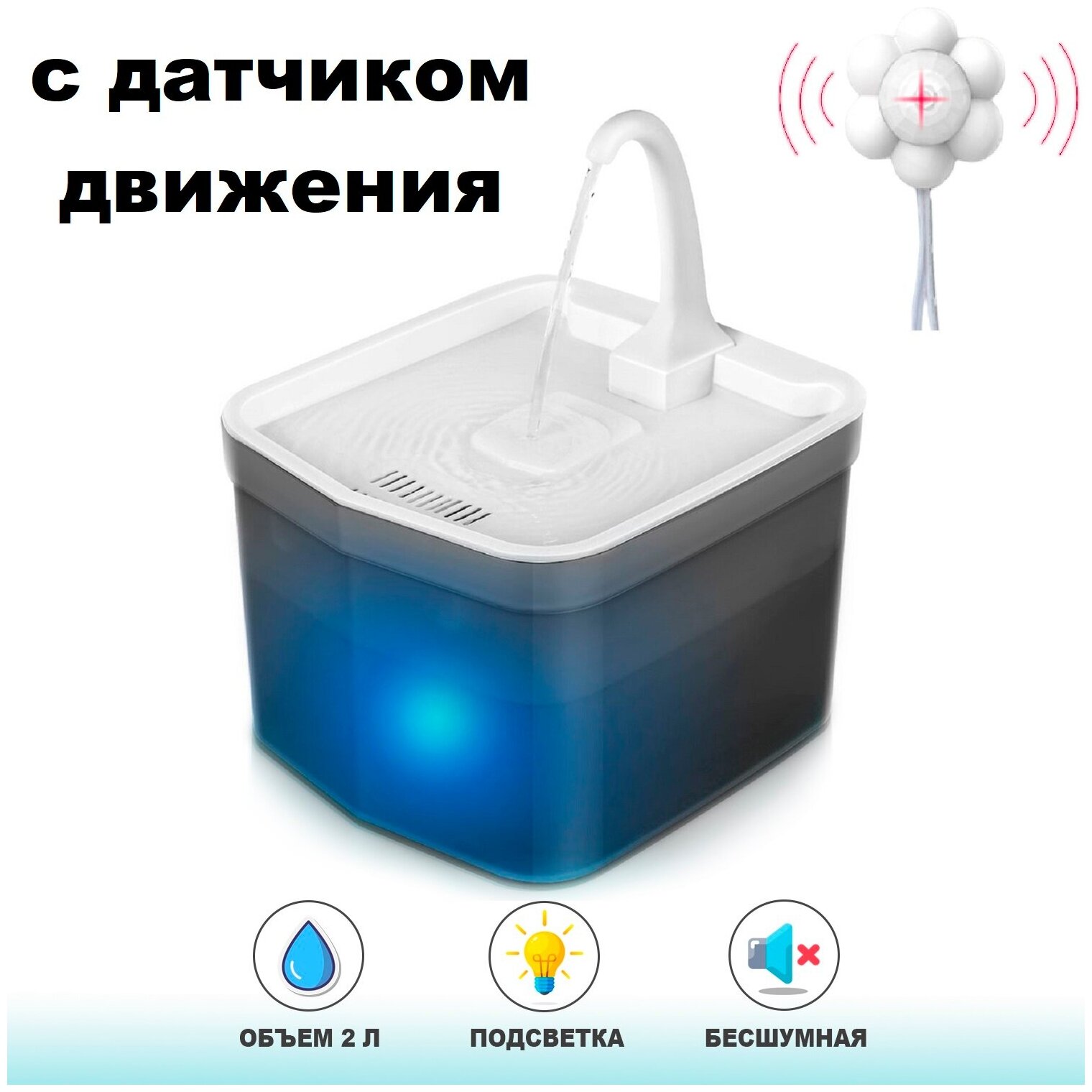 10 цен на Автоматическая поилка фонтан с датчиком движения для кошек, собак и грызунов / Автопоилка c краном для животных, серая