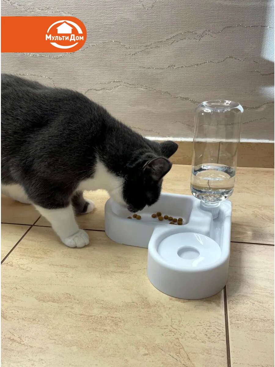 Отзывы на Миска двойная с автопоилкой для домашних питомцев для корма 300 мл, для воды 150 мл, объем бутылки 450 мл.