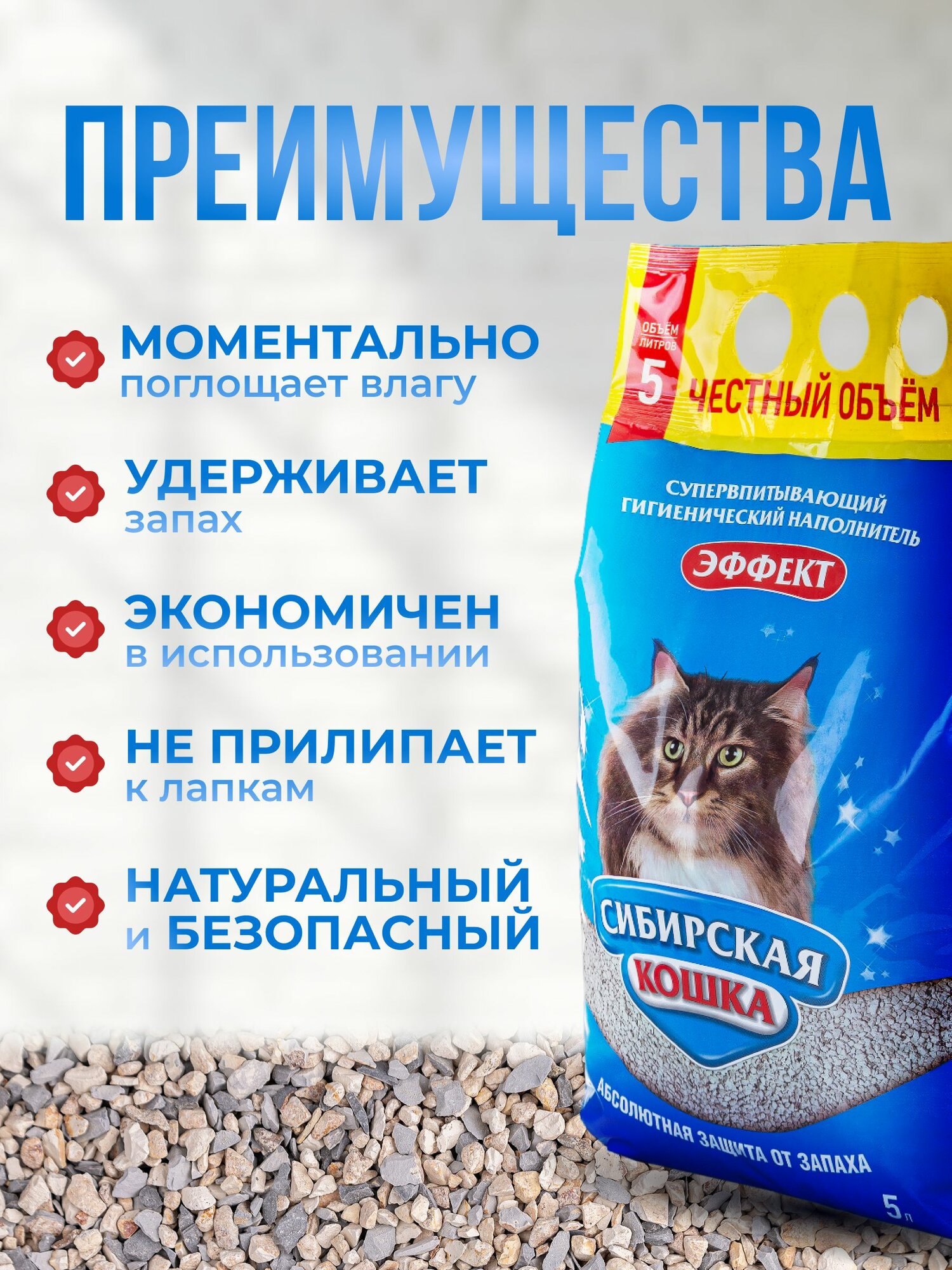 Наполнитель для кошачьего туалета 5л Эффект СИБИРСКАЯ КОШКА впитывающий информация: