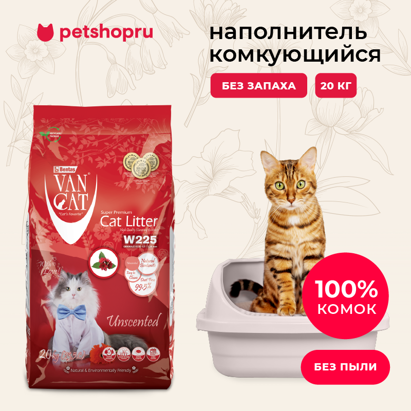 Отзывы на Van Cat комкующийся наполнитель "100% Натуральный", без пыли, бентонит, пакет, гранулы 0,5 - 2,25мм, (Natural), 20 кг