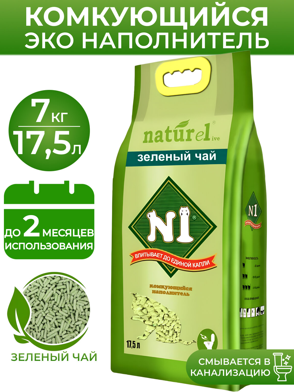 Наполнитель для кошачьих туалетов N1 NATUREL, комкующийся, зелёный чай, 17,5л информация: