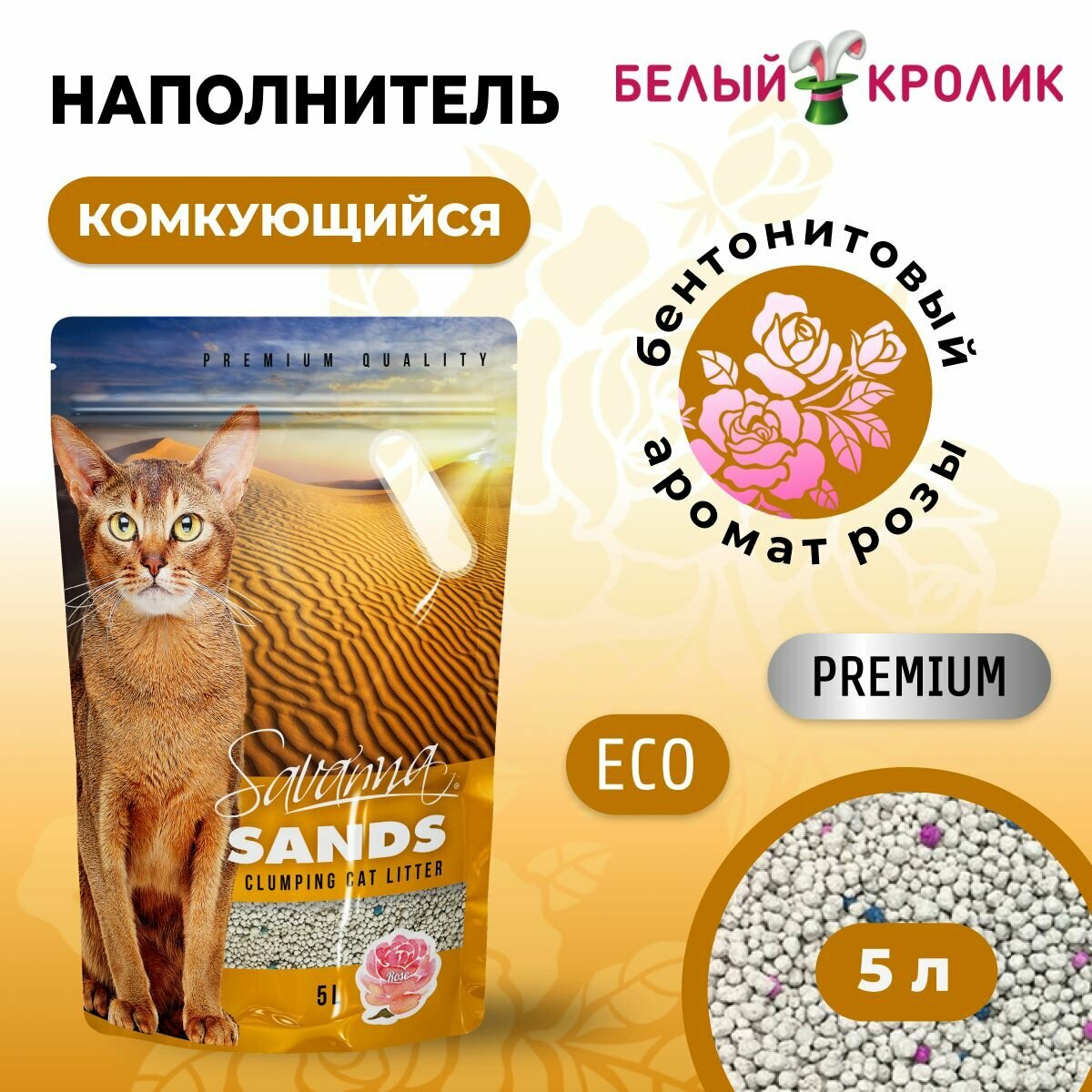 Savanna Sands Комкующийся наполнитель для кошачьего туалета с ароматом розы, 5 л (2 шт) информация: