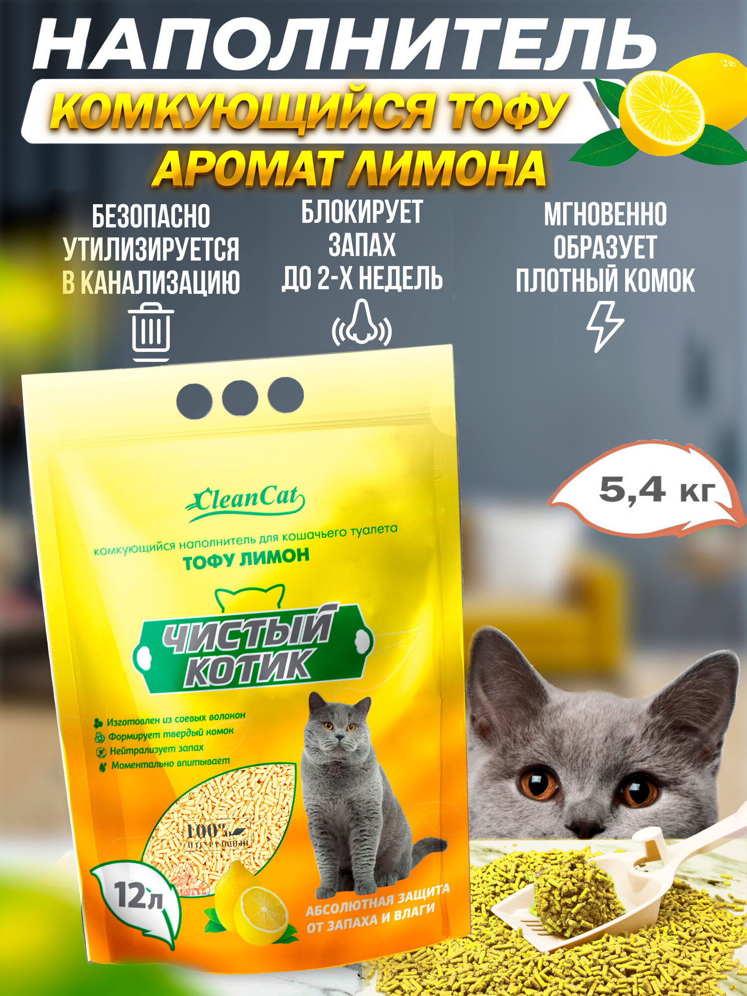Наполнитель комкующийся "Чистый котик" тофу лимон, 5,4кг (12 л.) информация: