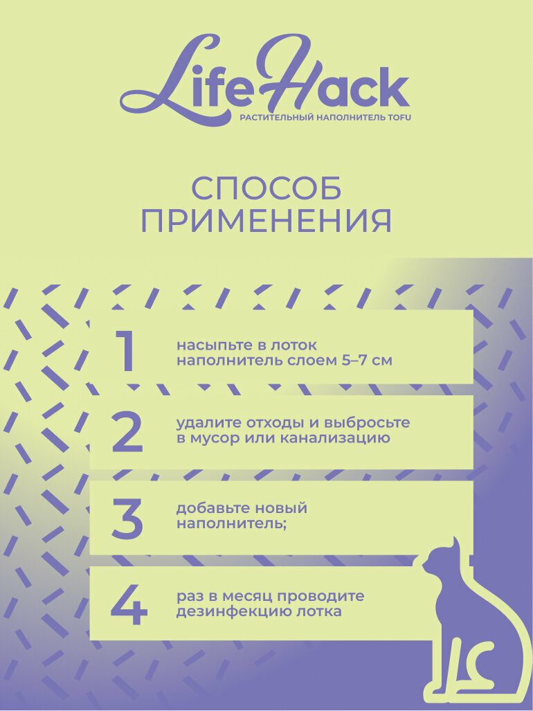 Комкующийся растительный наполнитель тофу Зелёный чай для кошачьего туалета LifeHack, 2,5кг информация: