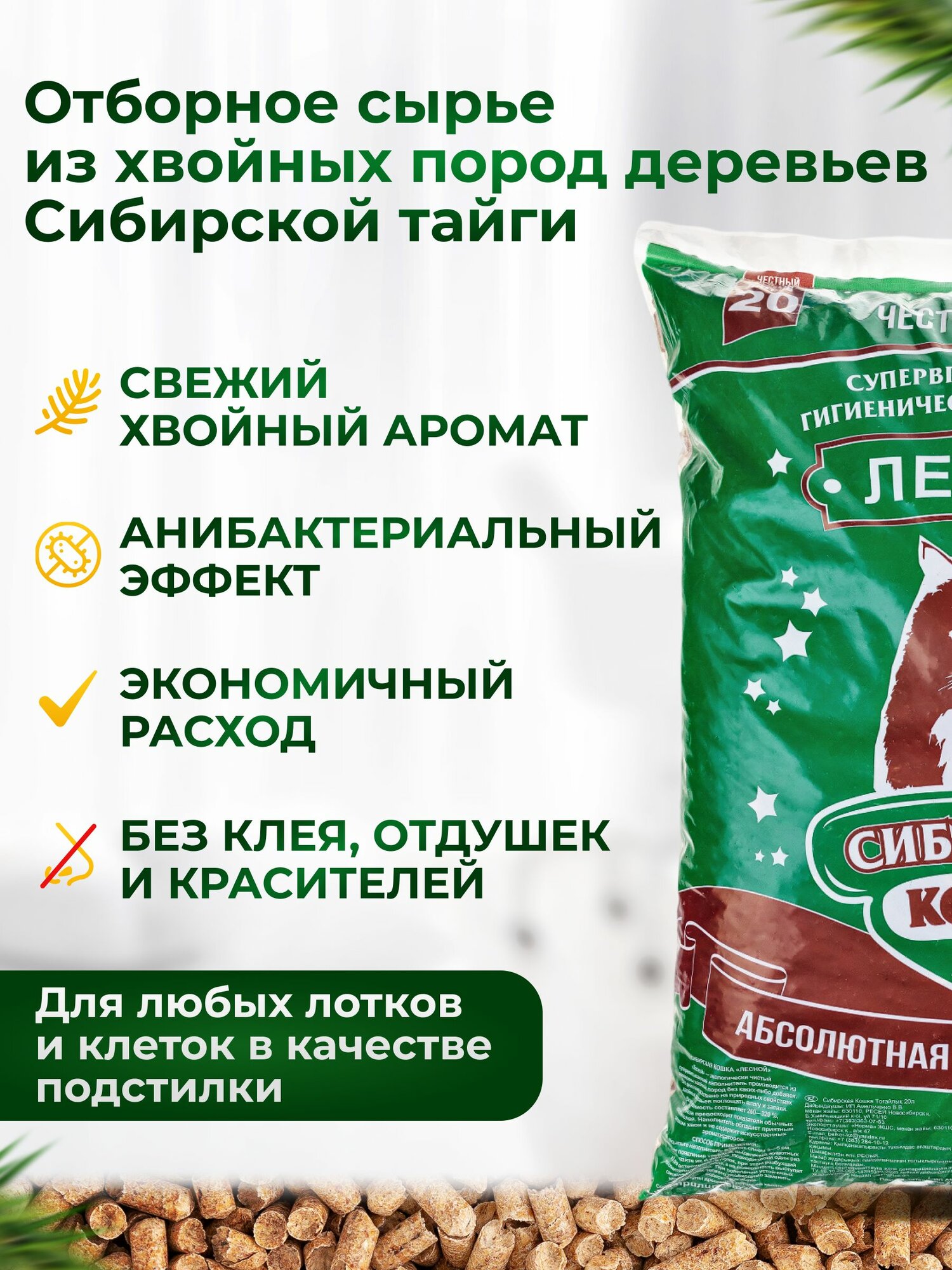 Наполнитель для кошачьего туалета 20л Лесной СИБИРСКАЯ КОШКА Древесный Хвойный Впитывающий информация: