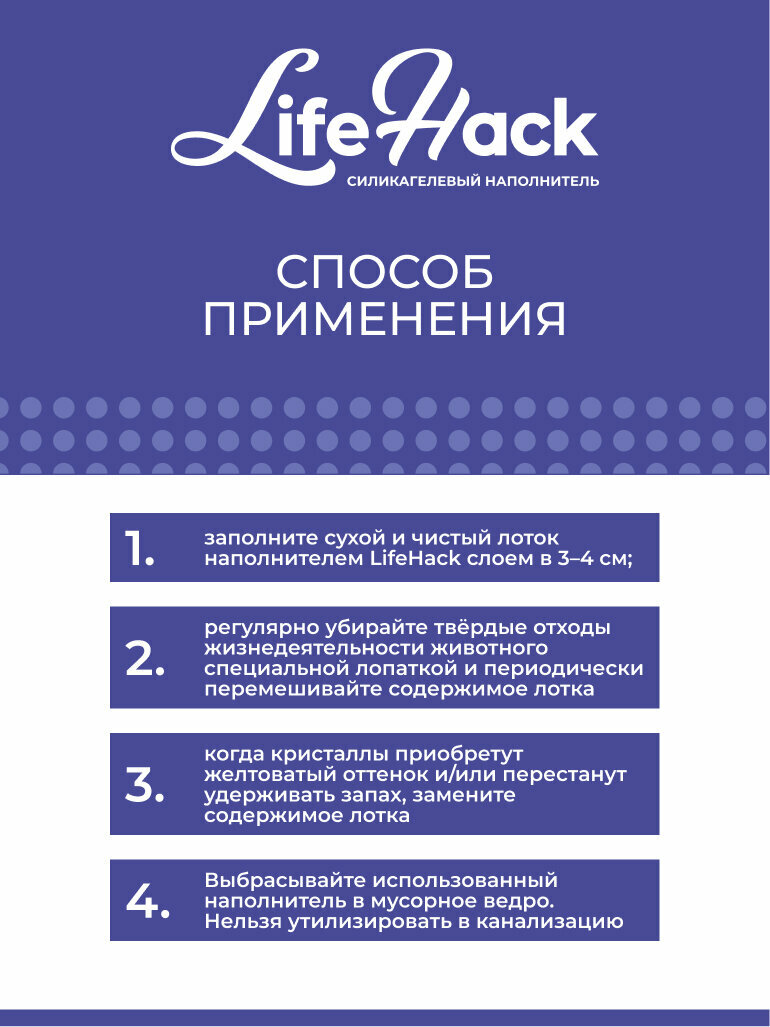 Наполнитель для кошачьего туалета "LifeHack", силикагелевый, без отдушки, 5 литров информация: