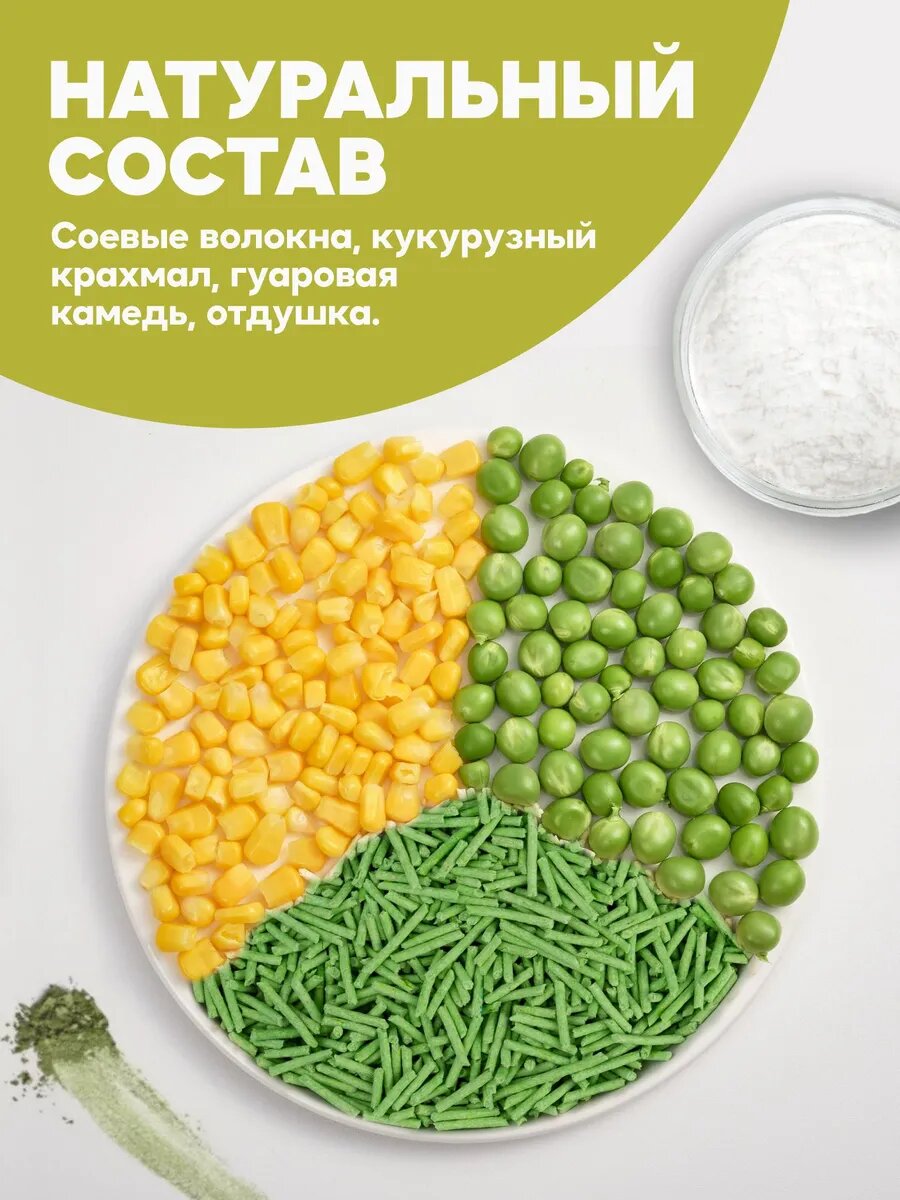 Соевый наполнитель UNIQPET для кошачьего туалета комкующийся, Зелёный чай, 6л информация: