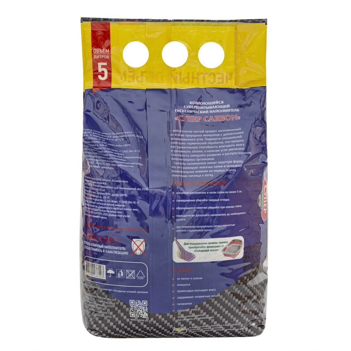 Наполнитель Сибирская кошка Супер CARBON, комкующийся, 5 литров информация: