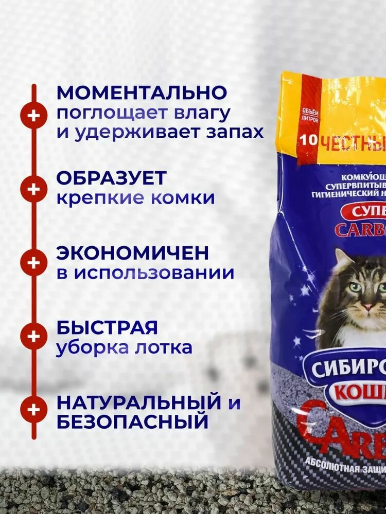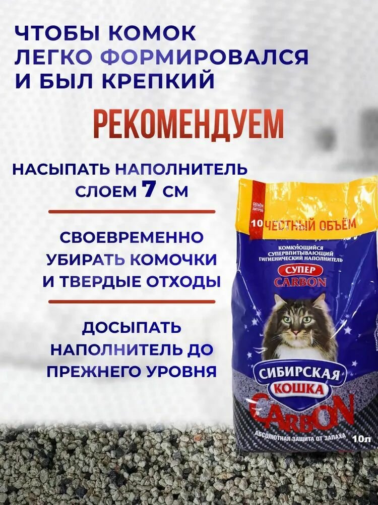 Наполнитель для лотка Сибирская кошка 10 л "Супер Carbon" комкующийся, минеральный 1 259 ₽
