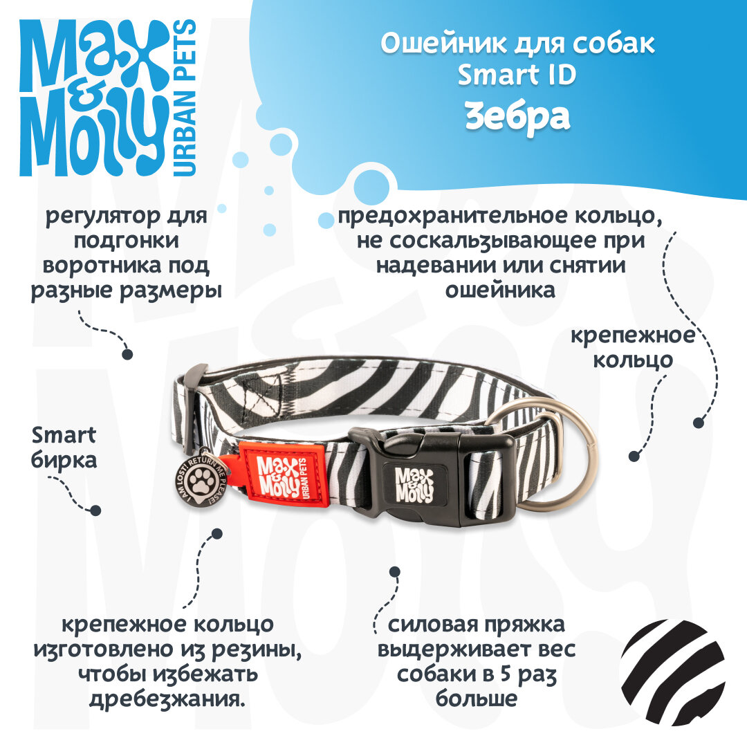 Ошейник для собак Smart ID размер XS, Зебра, Max&Molly информация: