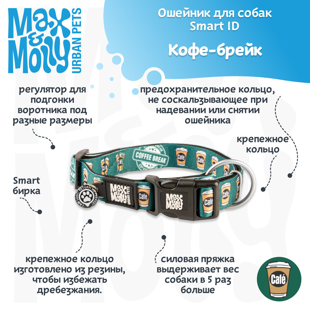 Ошейник для собак Smart ID, размер S, Кофе-брейк, Max&Molly информация: